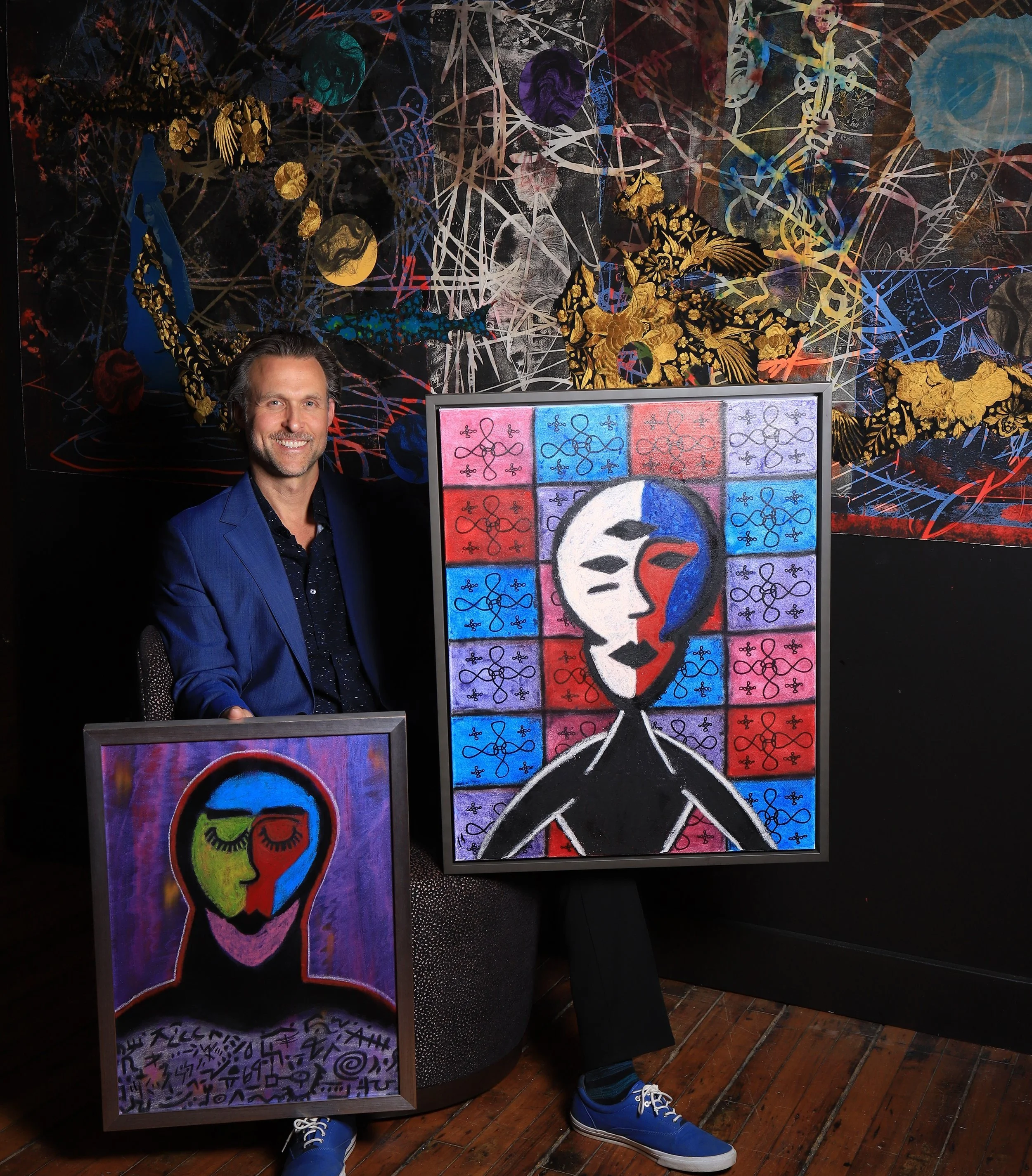 Corey Ceccarelli | Title: Pose and Repeat | Acrylic and spray paint on canvas | 36" x 48" or 91 x 122 cm | Multi-colour